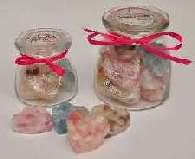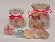 Our sparkly soaps in guest sizes beautifully packaged in a reusable glass jar; assorted colours, assorted scents- perfect for company or to give as a gift.