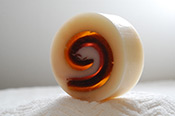 2.5" slices. These soaps were developed when researching agates from Australia. The rocks down under have many colours and bands when they form, but they reminded us of sushi, so that is how we named this design!